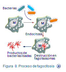 Cuando se produce una invasión local de microorganismos o incluso un trauma mecánico se activan una serie de componentes de la respuesta innata localmente produciendo lo que se conoce como inflamación. El proceso inflamatorio es como la síntesis de todas las actuaciones de la inmunidad innata a nivel de un foco de infección. En la inflamación se ponen en marcha elementos que interfieren con el invasor y además generan señales encaminadas a atraer nuevas células al foco al objeto de contribuir de manera más eficiente a la destrucción del invasor.Entre los procesos de lisis en la respuesta inmune innata, resaltan los llevados a cabo por las células NK, neutrófilos y macrófagos que destruyen a los invasores en una batalla célula a célula. También puede intervenir el complemento que ejerce una acción destructiva directa o a través de los macrófagos principalmente, sistema de protección. Sin embargo, en muchas ocasiones no son suficientes para defender eficazmente al organismo, pero por fortuna, éste dispone de la respuesta inmune adaptativa que puede actuar reforzando a la respuesta innata en caso de que ésta falle eliminando a los patógenos.