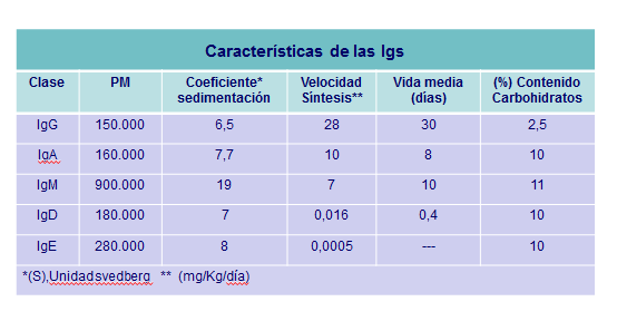 Aunque en los apartados anteriores se ha hecho mención a las propiedades y función de las inmunoglobulinas, a continuación estudiaremos brevemente y por separado las características funcionales más relevantes de cada una de ellas.