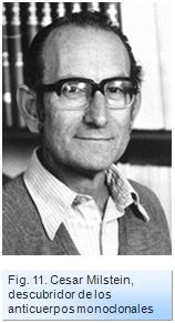 Sin embargo, los antisueros así obtenidos, ofrecen serias dificultades para su uso en el laboratorio. Esto se debe a la gran heterogeneidad estructural y funcional que poseen. Este problema se ha solucionado desde que Georges Kholer y Cesar Milstein consiguieron la producción de anticuerpos monoespecíficos, conocidos como anticuerpos monoclonales(ACMo) (Figura: Cesar Milstein).