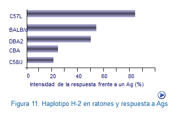 El hecho concreto es que cada individuo responde de manera única y distinta frente a estímulos iguales. Esto fue originalmente demostrado en ratones con diferentes haplotipos de histocompatibilidad (H-2) en los que se observó que respondían de manera desigual aunque se les administrase un mismo antígeno. Así, a ciertos antígenos sintéticos responden de manera más intensa los ratones C57L que los BALB/c/ o los CBA (Figura: H-2 y respuesta Ags).